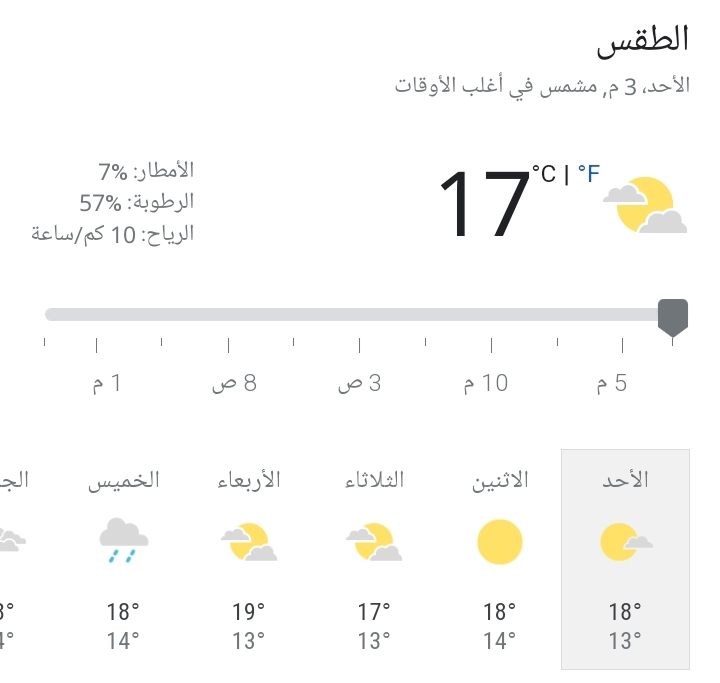 الإثنين غائم جزئياً مع انخفاض طفيف بدرجات الحرارة و يتشكل ضباب محلي على المرتفعات، وهناك احتمال لتساقط أمطارخفيفة بشكل متفرق خاصة في المناطق الشمالية والداخلية مع رياح ناشطة تقارب أحياناً ال ٥٠ كلم/بالساعة.