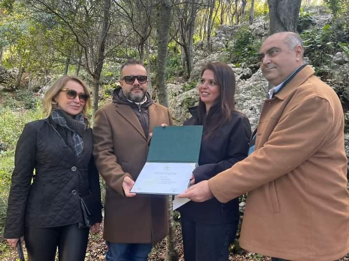 كما تم حصوله على أول شهادة certificate of adoption لشجرتي سنديان تقعان على مسار المشي المعتمد داخل المحمية.
