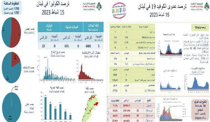 وعن حالات الكوليرا في لبنان، أعلنت عدم تسجيل أي إصابة جديدة، وعليه استقر العدد التراكمي للحالات المثبتة على 671، كما لم يتم تسجيل اي حالة وفاة وسجل العدد التراكمي للوفيات 23.