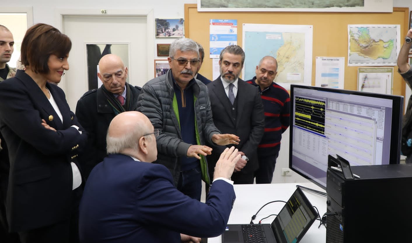 وقد إستمع الرئيس ميقاتي الى شرح مفصل عن عمل المركز الذي يهدف الى تقييم الخطر الزلزالي في لبنان من خلال دراسات علمية والرصد الزلزالي بواسطة الشبكة الوطنية التي تضمّ عدة محطات منتشرة على الأراضي اللبنانية والتي ترتبط بالمركز الرئيسي، اضافة الى دراسات بريّة وبحرية للفوالق الناشطة، ودراسة تشوّهات القشرة الأرضية وقياس مستوى المدّ والجزر بواسطة جهازين، يرتبط أحد الأجهزة بشبكة انذار التسونامي في البحر المتوسط.
