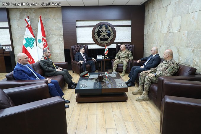 استقبل قائد الجيش العماد جوزاف عون في مكتبه في اليرزة، سفير جمهورية مصر العربية في لبنان الدكتور ياسر علوي والملحق العسكري المصري العميد أحمد محمد حسني علي عبد المقصود.