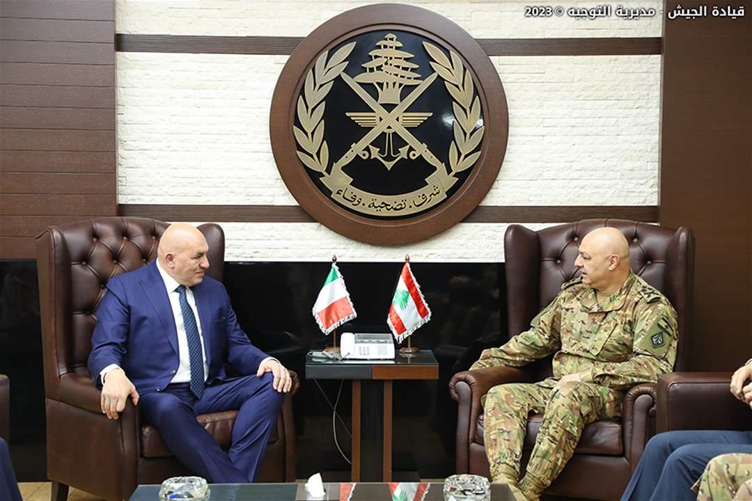 كروسيتو أعرب عن الإستعداد الكلي للتعاون ومساعدة الجيش والاجهزة الامنية اللبنانية منوها بالكفاءة العالية للجيش اللبناني ومتانة التعاون القائم مع جيش بلاده.