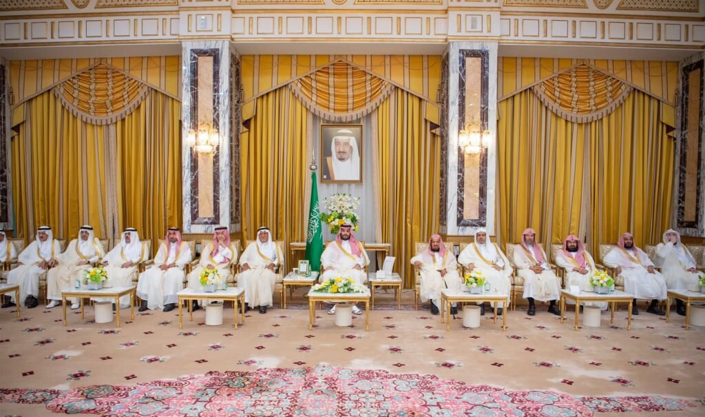 #ولي_العهد السعودي الامير محمد.بن سلمان يستقبل أصحاب السمو الأمراء وأصحاب الفضيلة العلماء والمشايخ والمعالي، وكبار المسؤولين من مدنيين وعسكريين، الذين قدّموا التهنئة لسموه بعيد الفطر السعيد.