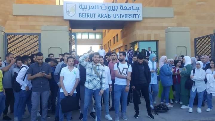 اعتراضا على قرار ادارة جامعه بيروت العربيه بدولرة الاقساط ومضاعفه قيمتها نفذ الحراك الطلابي في الجامعه وقفه اعتصام واضراب امام مبنى الجامعه في فرع الميناء طرابلس.