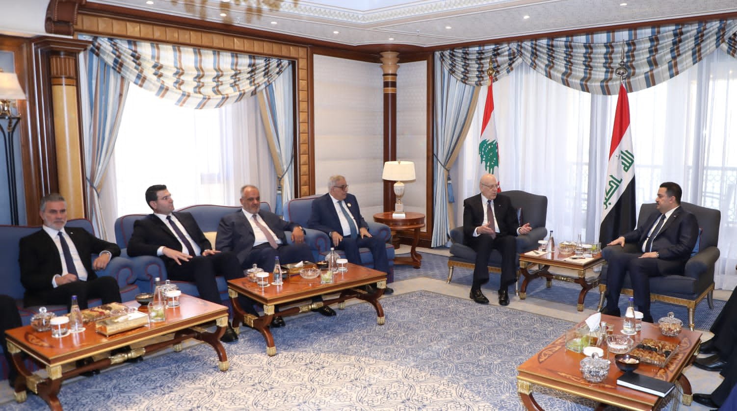 وقال الرئيس ميقاتي” إن العراق كان دائماً اليد الممدودة إلى لبنان في ظلّ الظروف الصعبة التي يمرّ بها البلد”، شاكراً الدّولة العراقيّة على ما تُقدّمه للبنان بشكلٍ دائم”.