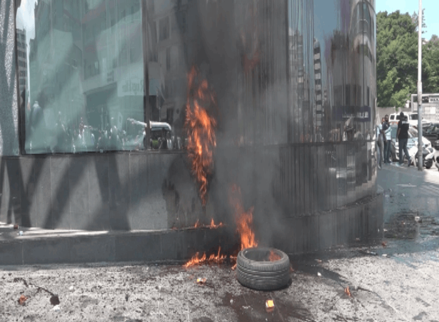أقدم محتجون على تحطيم الواجهات الزجاجية لبنك عودة وبنك بيروت في سن الفيل، وأشعلوا الإطارات عند مداخلهما.