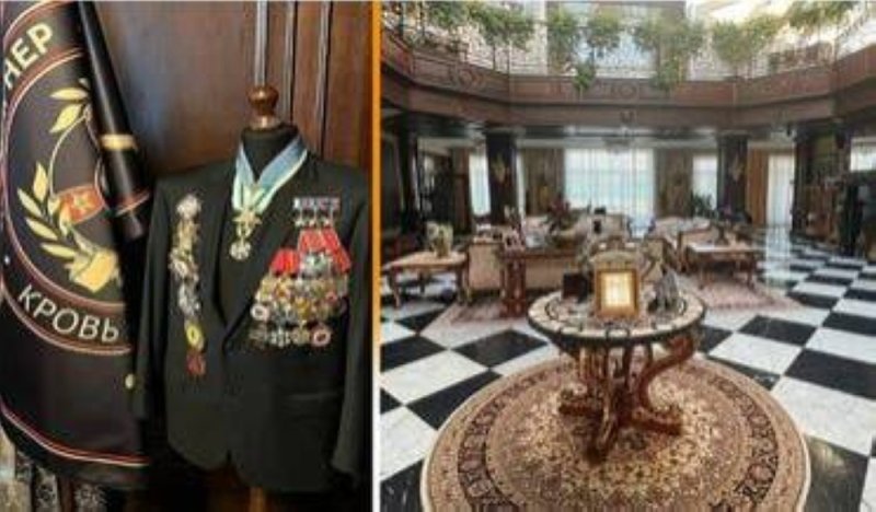 في القصر الضخم، ووفقا للسلطات الروسية، مسبح وساونا وصالة ألعاب رياضية وغرفة طبية، إضافة إلى مهبط للهليكوبتيرات. كما فيه ملابس عسكرية عدة لمعظم الرتب المهمة، وخزانة كبيرة تحتوي على عدد من الشعر المستعار بأشكال وألوان مختلفة، مع أنواع من الأوسمة منحتها السلطات الروسية لبريغوجين المنفي الذات حاليا في بيلاروسيا المجاورة بعد محاولته التمرد على بوتين الشهر الماضي، وفق “العربية”.