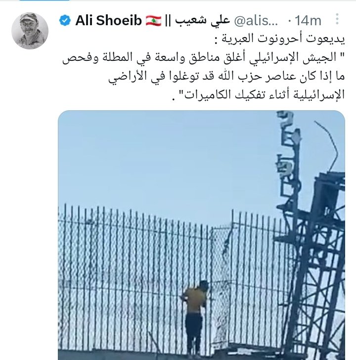 ” الجيش الإسرائيلي أغلق مناطق واسعة في المطلة وفحص ما إذا كان عناصر حزب الله قد توغلوا في الأراضي الإسرائيلية أثناء تفكيك الكاميرات” .