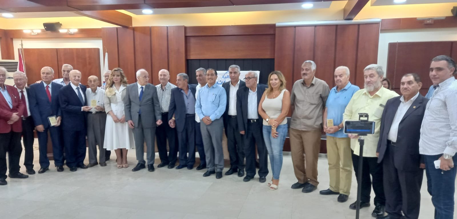 ثم قلد المكرمون دروعا رمزية وشارك الجميع في صورة تذكارية .