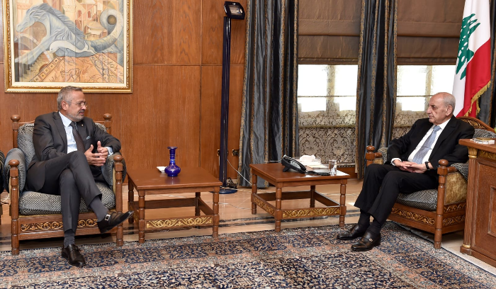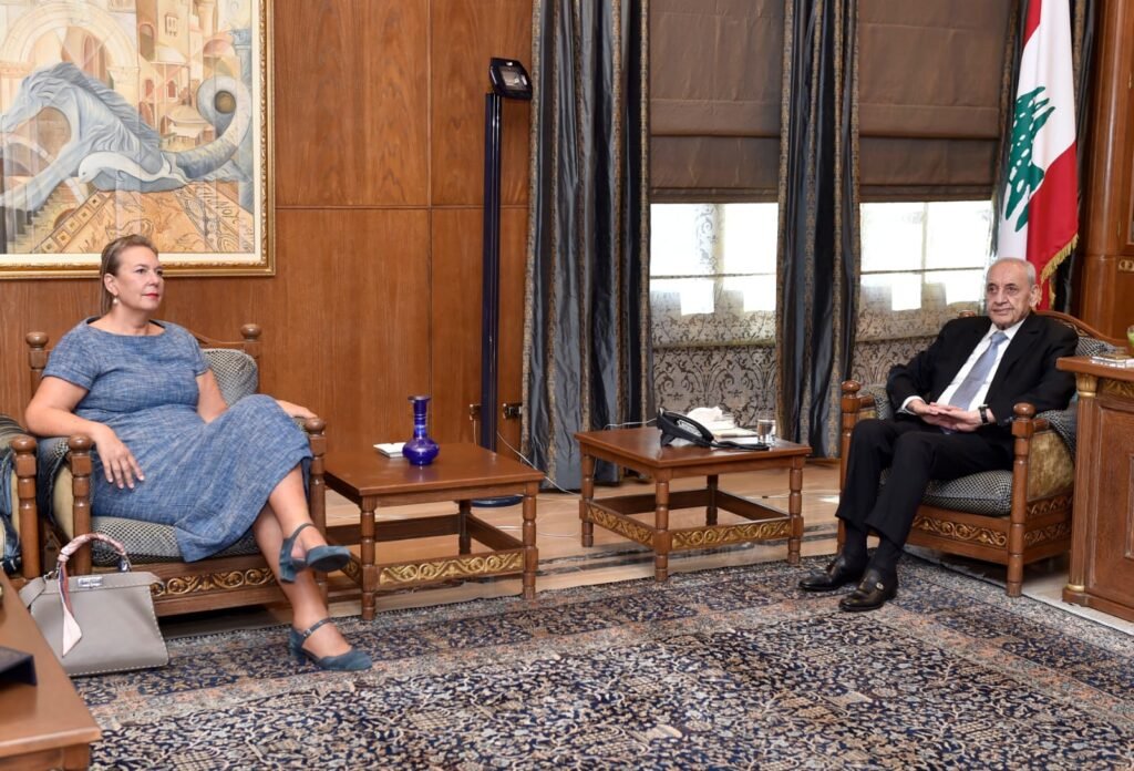 كما عرض الرئيس بري المستجدات وآخر التطورات خلال استقباله سفيرة سويسرا في لبنان ماريون ويشلت .