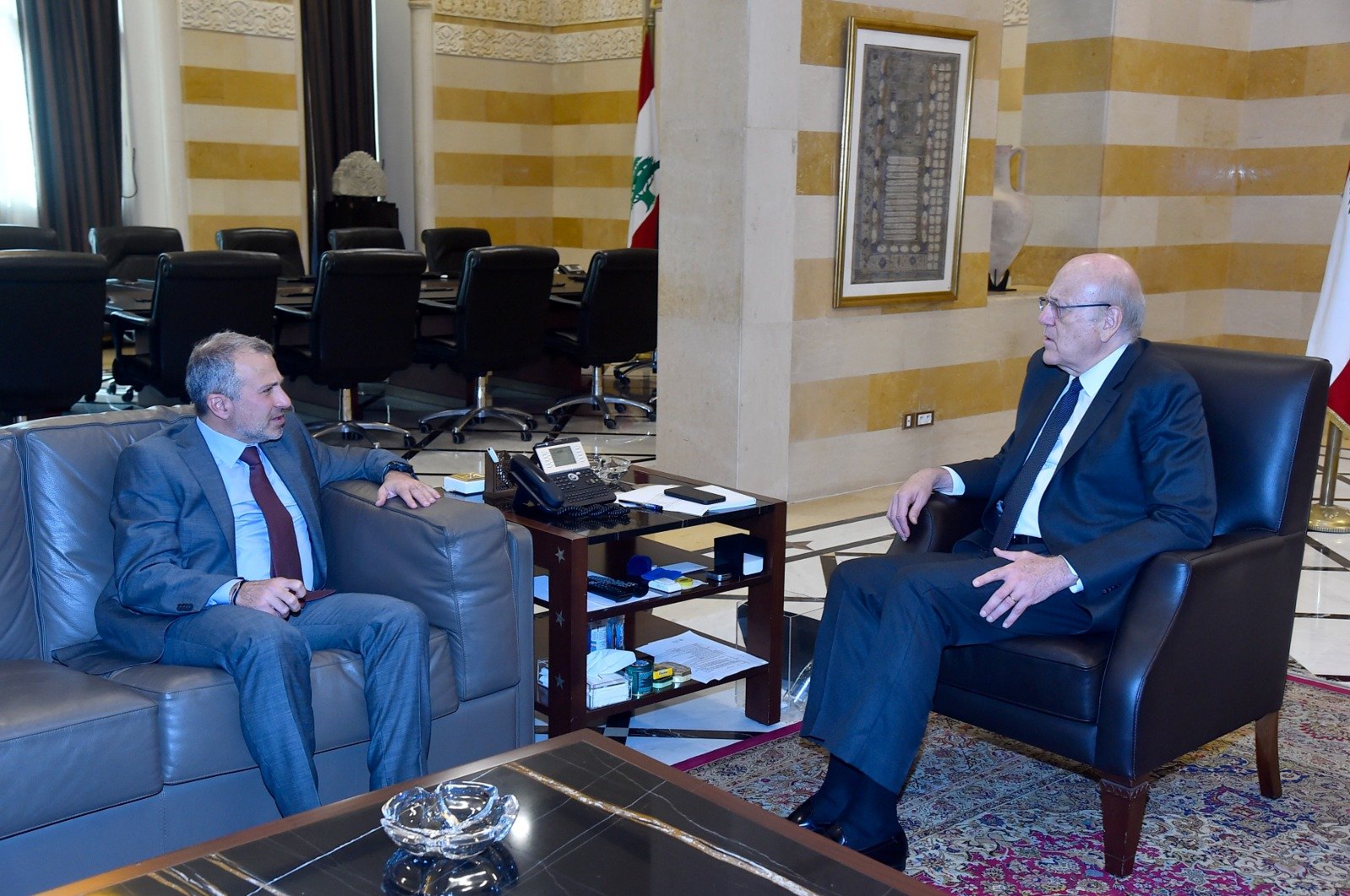 يستقبل رئيس الحكومة نجيب ميقاتي رئيس “التيار الوطني الحر” النائب جبران باسيل في هذه الاثناء في السرايا.