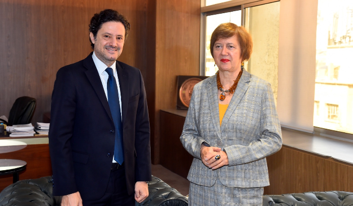 استقبل وزير الإعلام في حكومة تصريف الأعمال زياد المكاري في مكتبه بالوزارة، المنسقة الخاصة للأمم المتحدة يوانّا فرونتسكا ،وتم التطرق إلى الوضع العام و الدور المهم الذي يلعبه الإعلام في ظل الظروف الراهنة ، بالإضافة الى موضوع قانون الإعلام الجديد ، حيث ركزت فرونتسكا على أهميته و أكدت “ضرورة التنسيق بين الأمم المتحدة والوزارات في لبنان بما فيها وزارة الاعلام”.