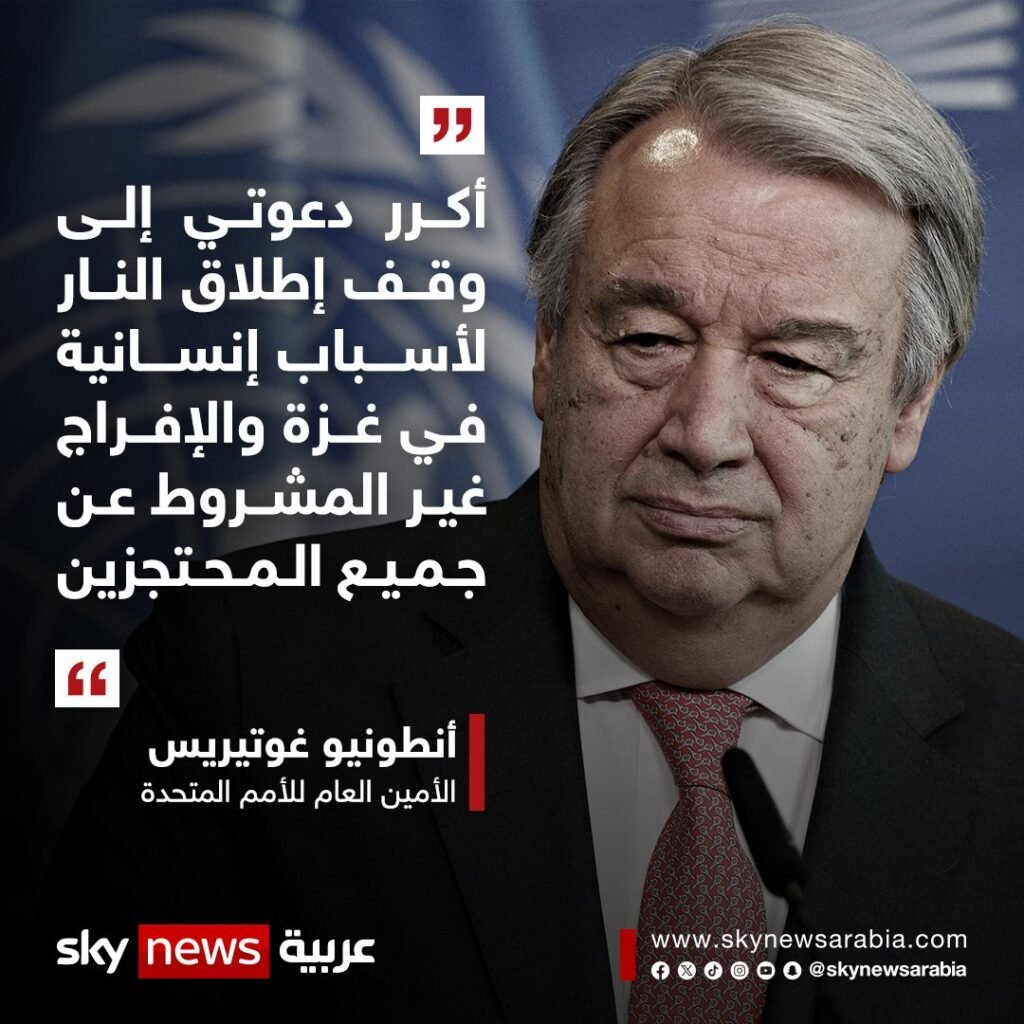 #غوتيريس: أكرر دعوتي إلى وقف إطلاق النار لأسباب إنسانية في #غزة والإفراج غير المشروط عن جميع المحتجزين