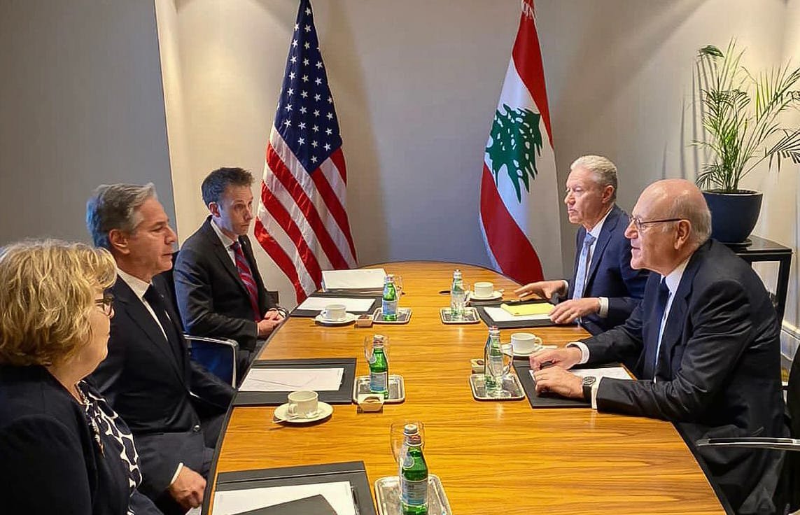 عقد رئيس الحكومة نجيب ميقاتي إجتماعا مع وزير الخارجية الاميركية أنتوني بلينكن في العاصمة الاردنية عمان صباح اليوم، شارك فيه سفير لبنان في الاردن يوسف اميل رجي، مساعدة وزيرة الخارجية الاميركية لشؤون الشرق الأدنى باربرا ليف ونائب رئيس موظفي وزارة الخارجية توم سوليفان.